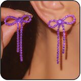 Rhinestone Bow Earrings : made of colorful rhinestone and alloy; ligth in weight and comfortable to wear it all day without burden