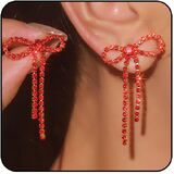 Bow Earrings Valentines Earrings for Women Black Pink Gold Silver Red Purple Blue Rhinestone Bow Earrings Hot Pink Bowknot Dangle Earring Sparkly Coquette Jewelry Valentines Day Dress Shirt Outfits for Women Valentine Sweaters Valentine's Day Gifts for Her