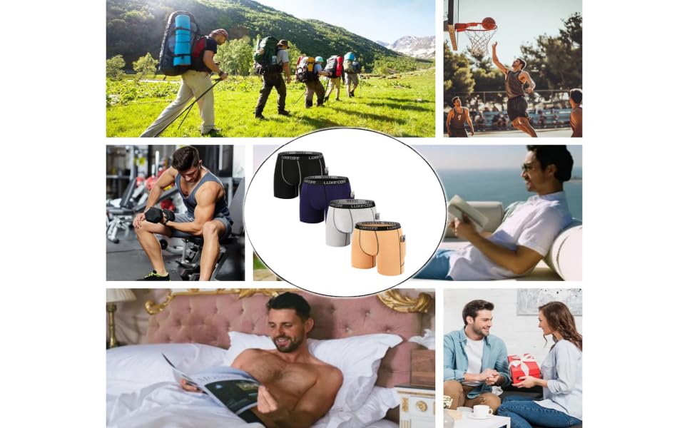 【Distinctive Men's Breathable Boxer Briefs】 4 pack, with 2 side pocketslet you carry phone, keys, or cards securely. Medium-length leg that prevents riding up, exterior innovative and fashionable.