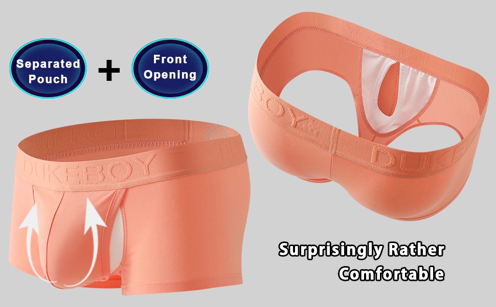 Cerahome Mens innovative dual pouch trunks can keep man's intimate areas comfortably separated without annoying squeeze. It likes a big pocket to hold men's "Chiken and Eggs", and. The front big pouch sustains a fresh environment and supports and air movement. No constraint, no embarrassing adjustment.