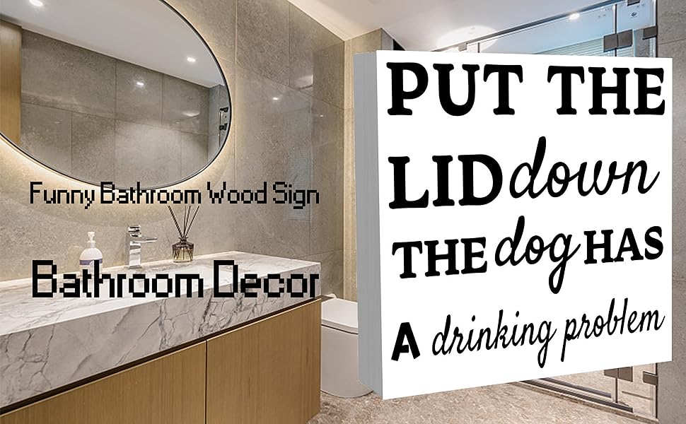 Bathroom Decor Put The Lid Down The Dog Has A Drinking Problem Wooden Box Sign Bathroom Shelf Decor Funny Dog Room Sign For Home Toilet 5.1x5.1x1.2 Inch