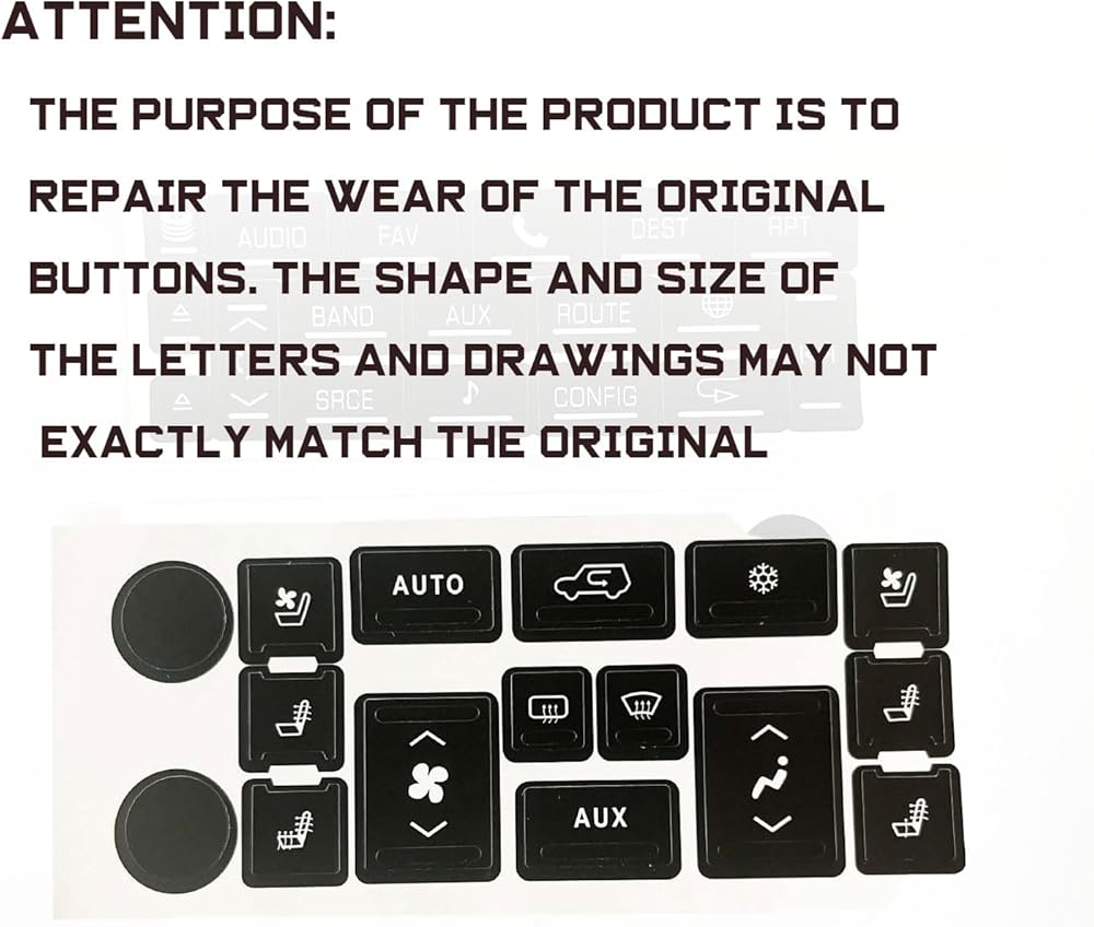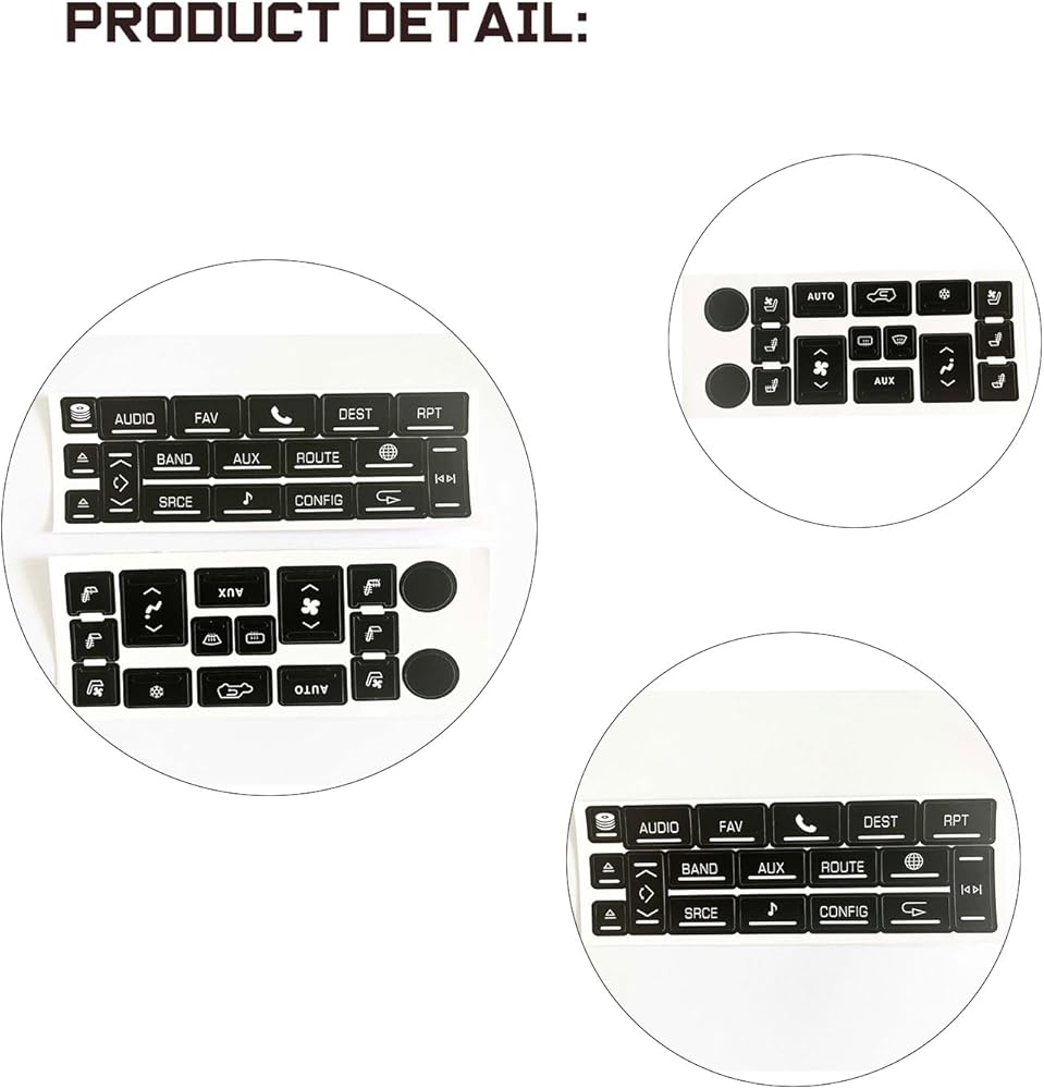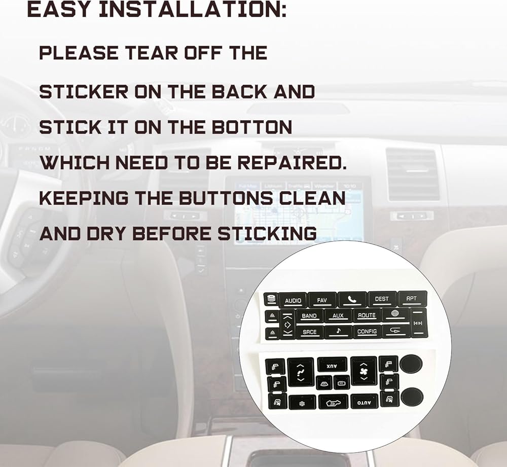 COMPATIBILITY: The button sticker fit for 2007-2014 Cadillac Escalade,Escalade ESV and EXT PACKAGE INCLUDE: 1 set car repair sticker.
