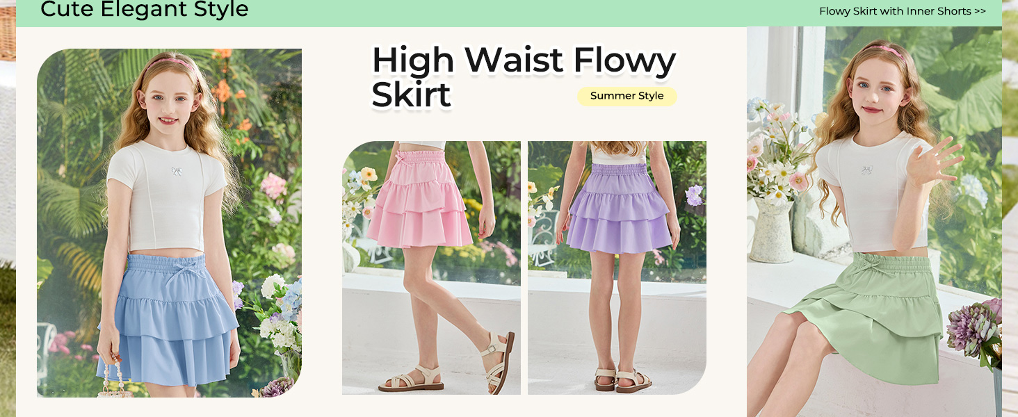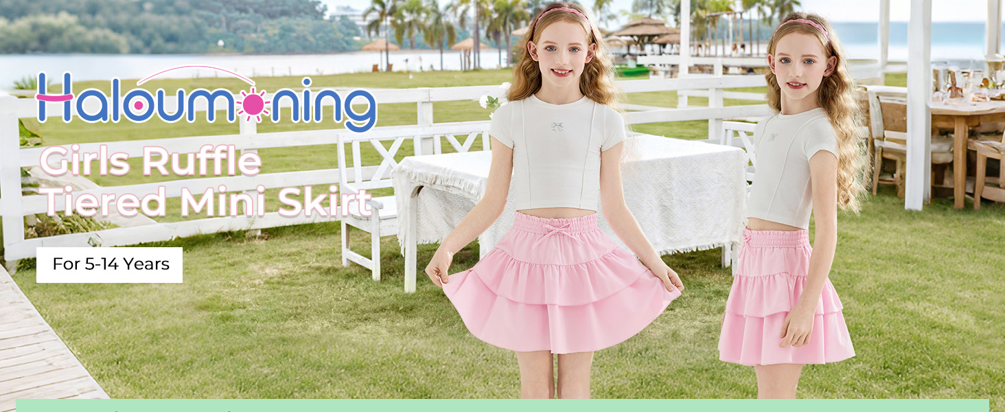Tiered Ruffle Design: The girls' mini skirt features a charming layered construction with graceful ruffles. These ruffles create a playful, aesthetic silhouette that perfectly balances charm and elegance, making it suitable for everyday wear