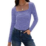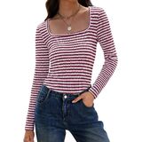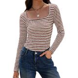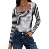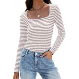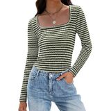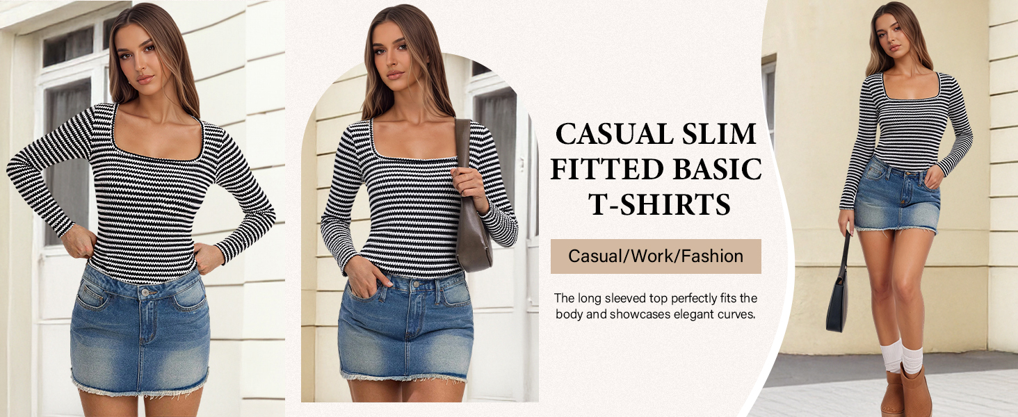 Design Highlights: This cute striped t shirts for women features a chic square neckline and stripes for a classic and stylish look. The cut perfectly hugs the body, making it a perfect piece for Spring 2026 Y2K fashion trends.