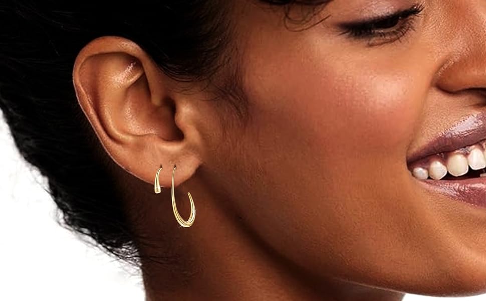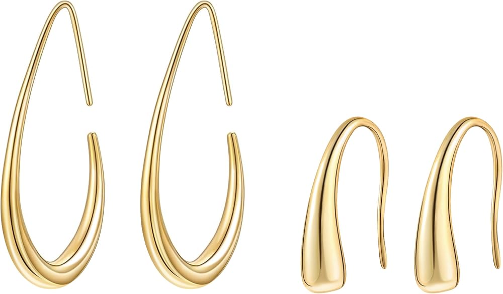 Exquisite Design : These small huggie earring set in 2 pairs The ladies' half open oval shapedangle earrings. These hypoallergenic hoop earrings for women gold,the timeless design charm, The gold teardrop hoops design, as dangling earrings,small and large set, Perfect for everyday wear or statement earrings for womens special occasions, these gold teardrop hoops effortlessly elevate any outfit.