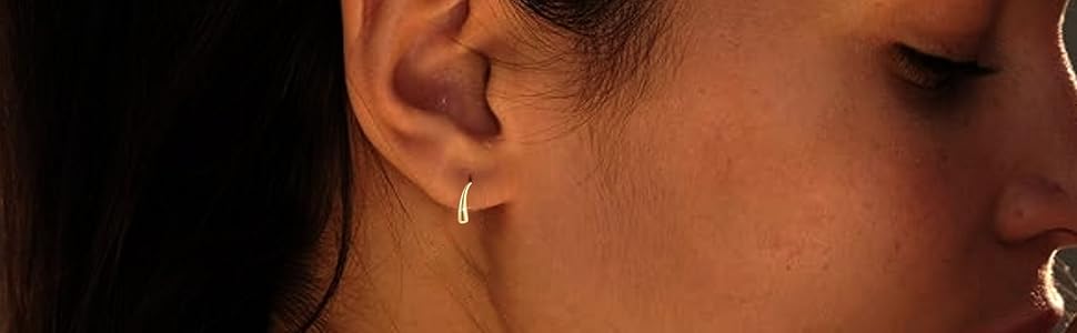 Hypoallergenic Earrings Material & Handmde Craftsmanship : These 14k gold huggie hoop earring for women are crafted in 925 Sterling Silver plated with 14K gold. nickel - free, perfect for sensitive ears. waterproof design ensures long - lasting shine and lightweight, they're a great addition to any collection of gold statement earrings for women.