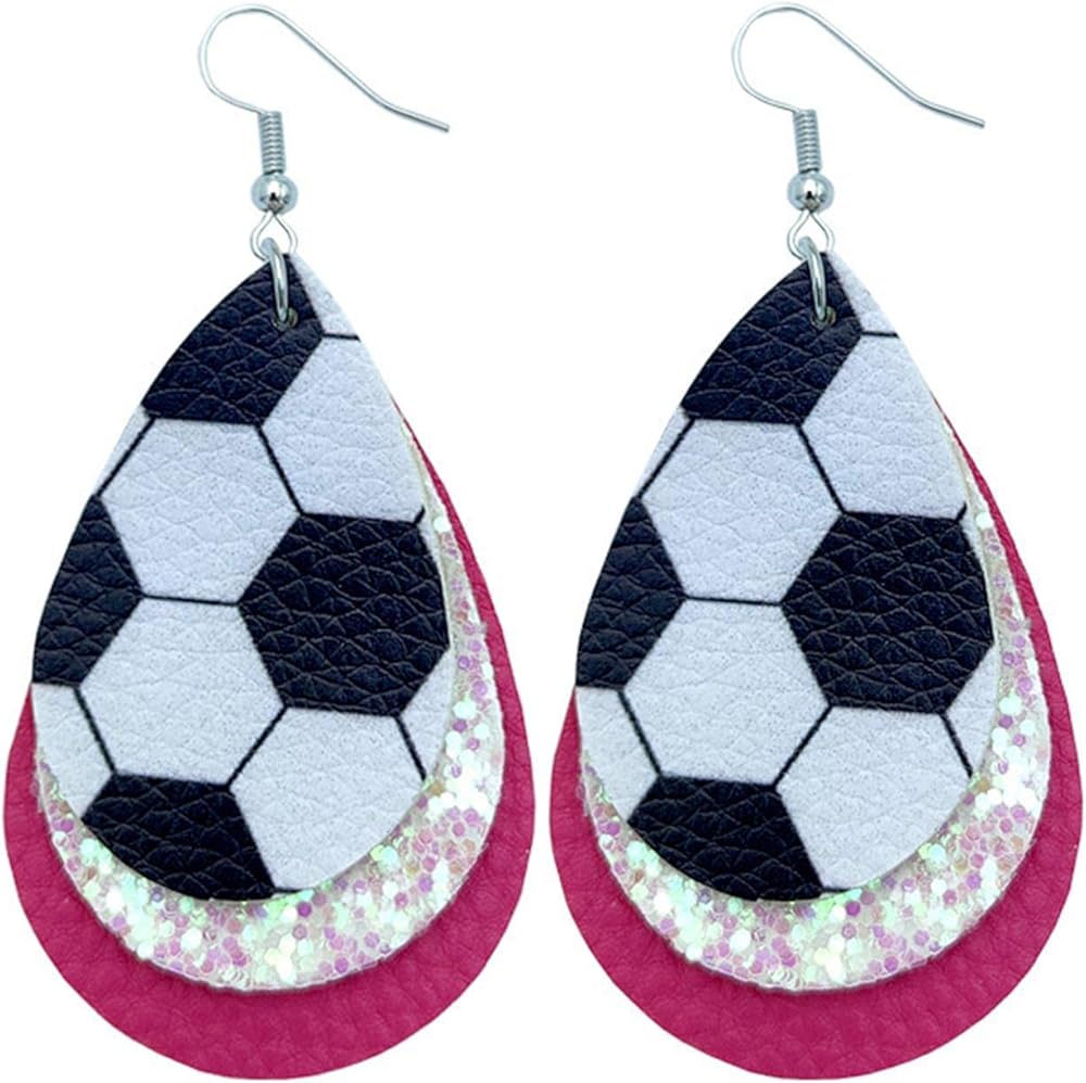 Colorful World Cup Soccer Leather Dangle Earrings Glitter Layered Sports Lover Ball Teardrop Earrings for Women Girls Jewelry in Kuwait