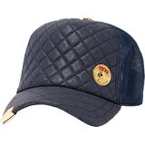 A puffed crossed stitched crown & visor resembles the finest seating of a luxury car. A 3 dimensional 18k gold plated mold with clear stones is the mark of sophistication and prestige.