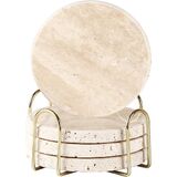 Natural Yellow Travertine Marble Coasters Set of 4-4" Round Stone Drink(with gold cup holder)