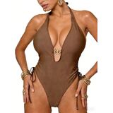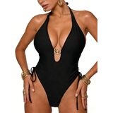 - Features:Deep V plunge neckline with front ring accent and side-tie details for a bold, stylish look