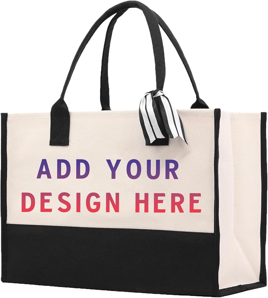 Custom Logo: Upload your full color logo, easily personalized with a variety of styles, colors, materials. Deluxe cotton canvas tote bags, jute bags are great giveaway for brands, businesses. Your customers will love the style of your promotional bags.
