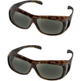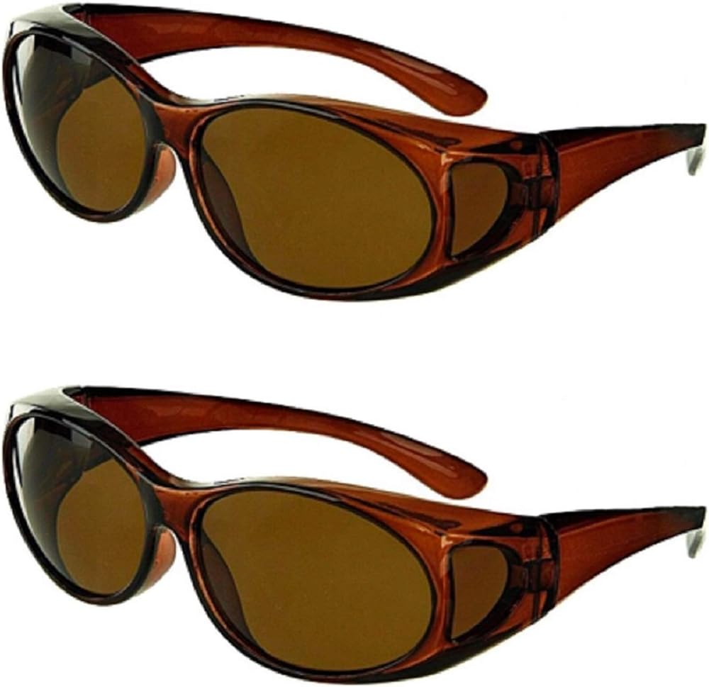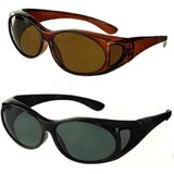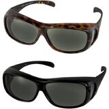 Discover the better way to protect your eyes with fit over sunglasses. Eye health experts recommend protecting your eyes with sunglasses every time you head outdoors, but that's not easy to do when you have to wear eyeglasses. Over the glasses sunglasses are the most affordable answer to your dilemma! With cover over sunglasses, you can reduce UV exposure from the front, top, and sides of your eyes while wearing your everyday eyeglasses. The wear over sunglasses shell is designed to fit over all types of eyewear to provide an effective shield against the sun. Why should you use polarized lenses? Polarized lenses cut down on glare to make it easier for you to see on bright days. These fit over polarized sunglasses are made from lightweight, heavy-duty, wear and tear scratch resistant plastic, so they can outlast other wear over sunglasses! Fitover sunglasses can be worn by men and women. Wear over sunglasses are trendy fashion pieces, they are also designed to provide an unparalleled level of protection and optimal comfort while golfing, driving, fishing and all water sports and outside activities.