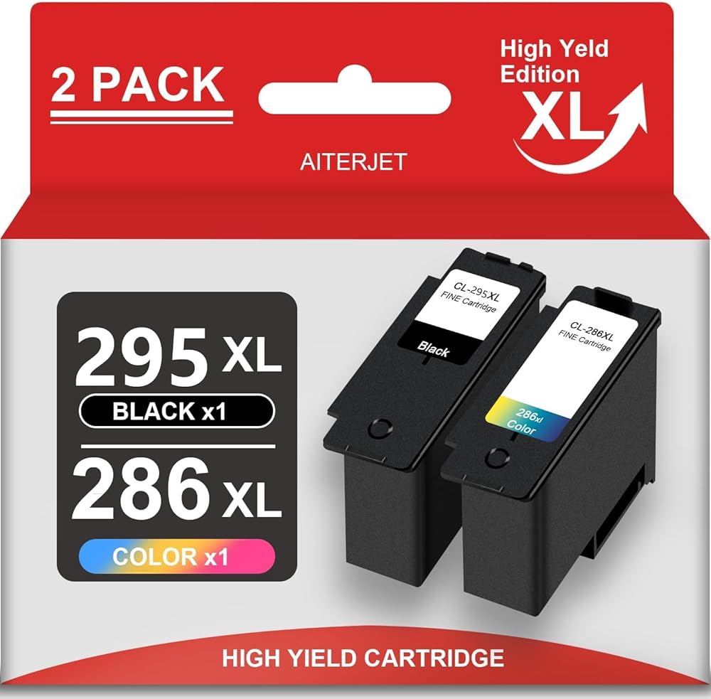 High Capacity PG-295 CL-286 Ink Cartridges Replacement for Canon PG-295 CL-286 Ink Cartridges use for Pixma TR7120,TS6520,TS4320 Printers (1 Black 1 Color)