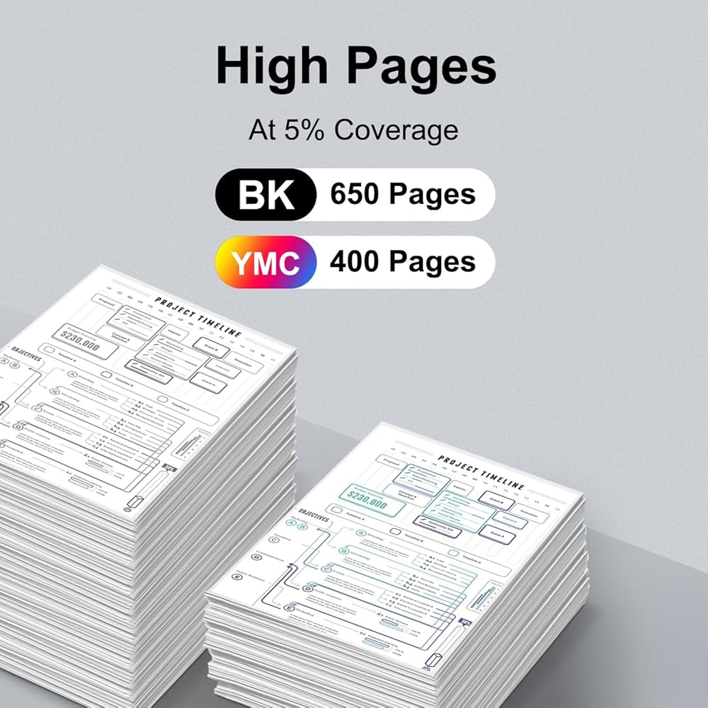 High Page Yield: Up to 600 pages per black ink cartridges(5% coverage)