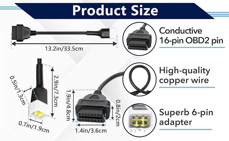 Compatible Machines: This motorcycle obdii 6 pin to 16 pin cable can be used with OBD2 interface diagnostic machines, ELM327 scanners and other specialized diagnostic machines. The connector of this OBD2 6 pin adapter supports K-wire and CAN bus, connect the diagnostic equipment to the 6-pin connector of the motorcycle to read it. Please check your vehicle model and diagnostic interface shape before purchasing.