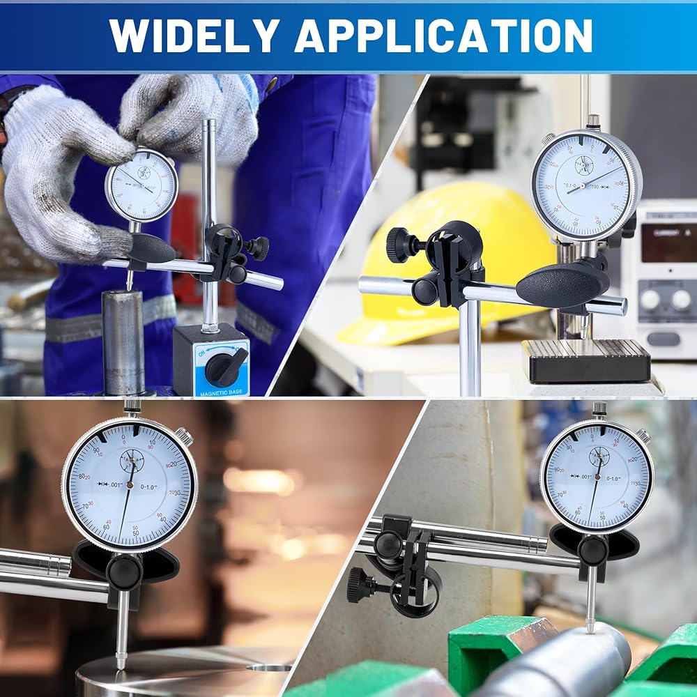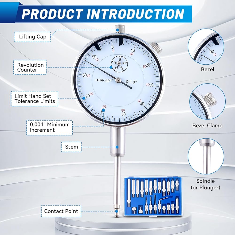 【Complete Inspection Set】Includes a 3-piece precision kit: 0-1" dial indicator (graduation: 0.001"), magnetic base with ON/OFF control, and a 22-piece indicator point set. Perfect for precise measurements in mechanical, automotive, and industrial applications.