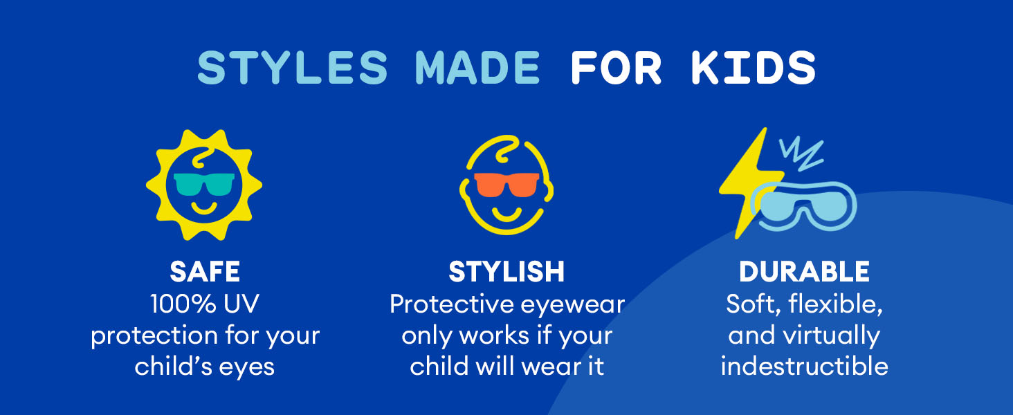 100% UV PROTECTION: Features UV400 lenses that block 100% of harmful UVA and UVB rays - protecting your child's delicate eyes during outdoor play.