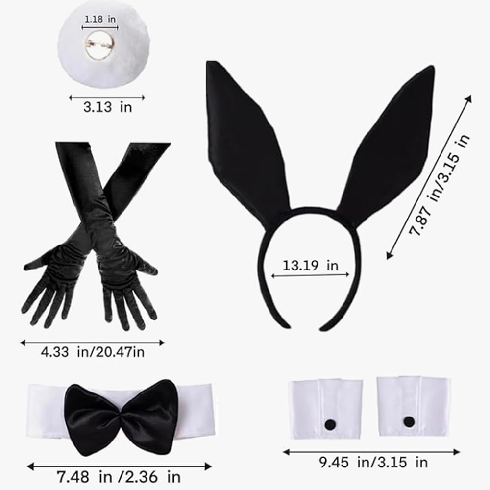 Rabbit Costume Outfit Set:Rabbit costume includes bunny ears, bow tie, black gloves, bunny tail and a pair of gloves, which can make you enjoy the fun of dressing up and integrate into the festive atmosphere