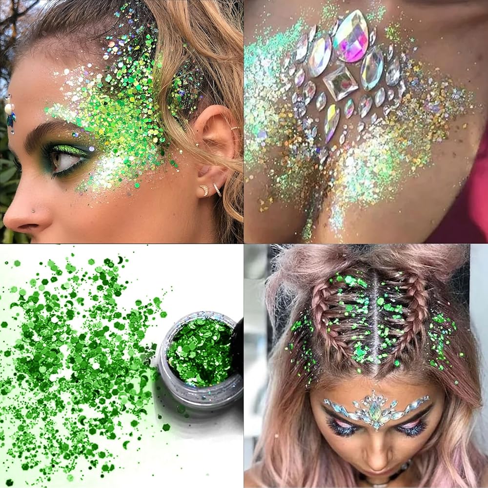 Silver Body Glitter: Use primer, hairspray, gel, eyelash glue for under eye tears, glitter eyeshadow, cheekbone highlights, glitter braids, collarbones, shoulders, makeup or nail polish to give your alien costume a sparkly look! This alien accessories for women will make you the center of attention