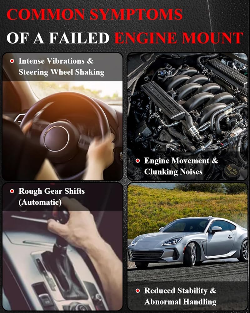 【Premium Durability】Engineered with durable rubber and iron aluminum to absorb vibration and reduce noise, ensure safety and stability, flexible and durable, prolong the service life of the engine, solve the problem of slow start and slow acceleration of the car, Ensures a secure fit and reliable performance under all driving conditions, Easy to install, directly replace the worn or broken engine mounts.