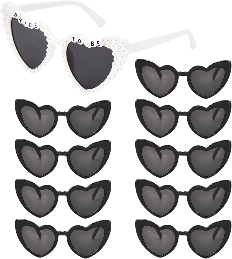10PCS Heart Bride Sunglasses Bachelorette Party Favors Sunglasses Decorations Bride to Be Accessories Glasses for Wedding