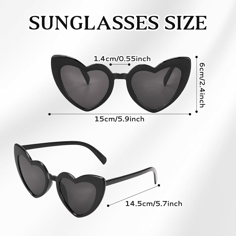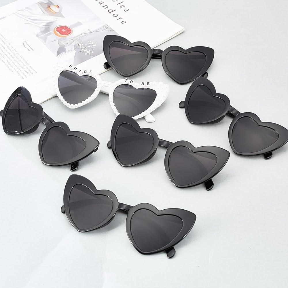 • Rich Packaging Content: A set consisting of 10 pairs of heart-shaped sunglasses, including 1 pair with pearl decoration and 9 pairs in pure black color