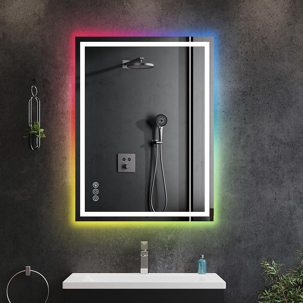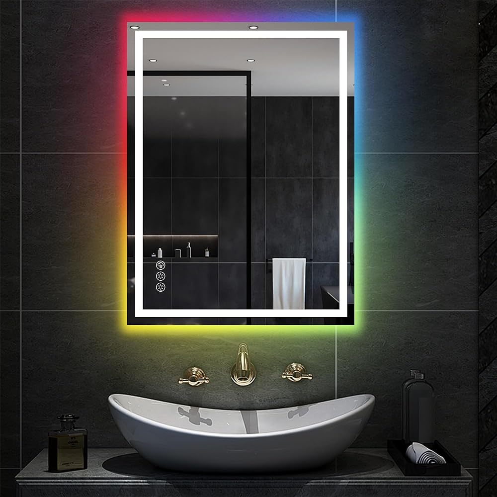 Awoco LED Bathroom Mirror, 24" x 32" Vanity Mirror with 8 Colors RGB Backlit and 3 Colors Front Light, Dimmable Anti-Fog Lighted Mirror, Memory Function, Mirror for Bathroom Wall