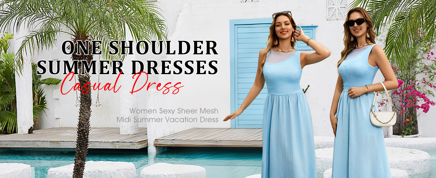 Exquisite Craftsmanship: This sleeveless midi dress features a one shoulder design with glitter sheer mesh that accentuates the collarbone's allure. The sharp A-line cut flows into a swaying skirt that dances with every step, creating an elegant silhouette in motion. Two side pockets of dress provide convenient storage for small essentials, making it perfect for everyday wear.