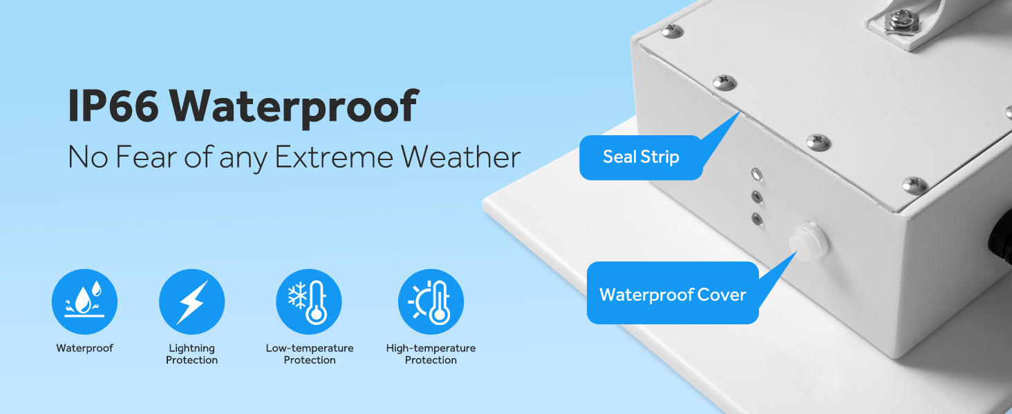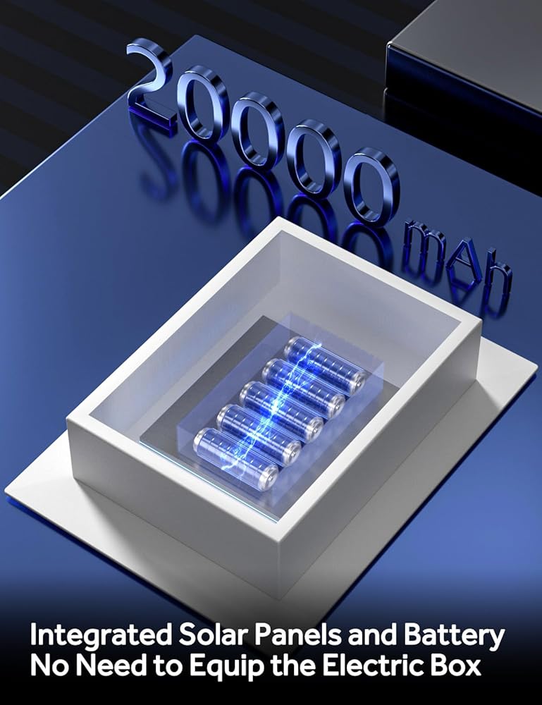 LiFePO4 Rechargeable Battery – 20000mAh rechargeable battery is built-in this solar battery charger, integrated solar panels and battery design let you don't need to equip an electric box, the LiFePO4 battery has up to 1000 cycles of charging
