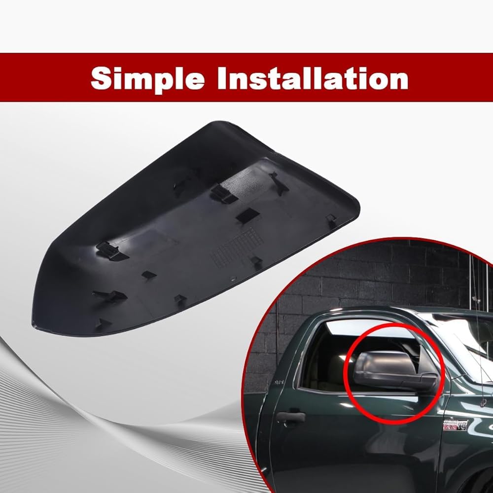 Simple Installation : Adorned with a Textured Black using UV Painted technology ,this mirror cover offers a perfect replacement for damaged or missing ones, without requiring any modification.