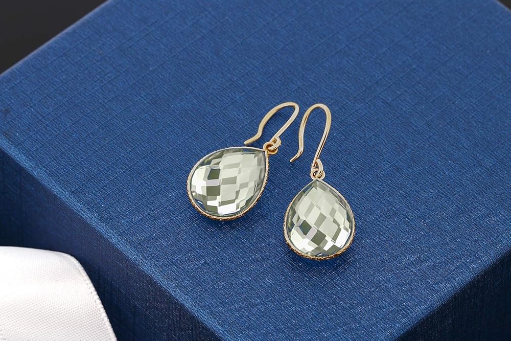 IMPRESSIVE PEAR SHAPE DESIGN: Make a statement with the pear-shaped 16X12MM green prasiolite stones. With a total carat weight of 13.00, these earrings boast an impressive size and shape that adds drama and allure to your look.