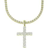 Tennis Necklace Width: 4mm, Length: 16-24 inches. Cross bling pendant size is 5*3 cm. Iced out Cross bling pendant. The tennis chain can be worn by itself or layered with cuban link chain or iced out cuban or puff mariner link chain.