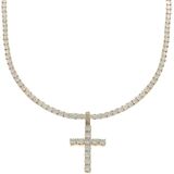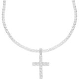 Unisex Silver Gold Black Rose Gold Finish Iced Out Lab Created Diamond Cross Pendant 4mm Tennis Chain 1 Row Necklace 16-24 inches