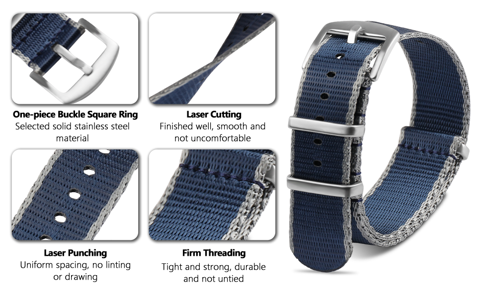 ⌚【Customer Service】Our nylon watch band insists on the best quality and service. If the watch strap you received has quality problems, please feel free to contact us. We will help you solve this problem within 24 hours and provide you with the best solution.