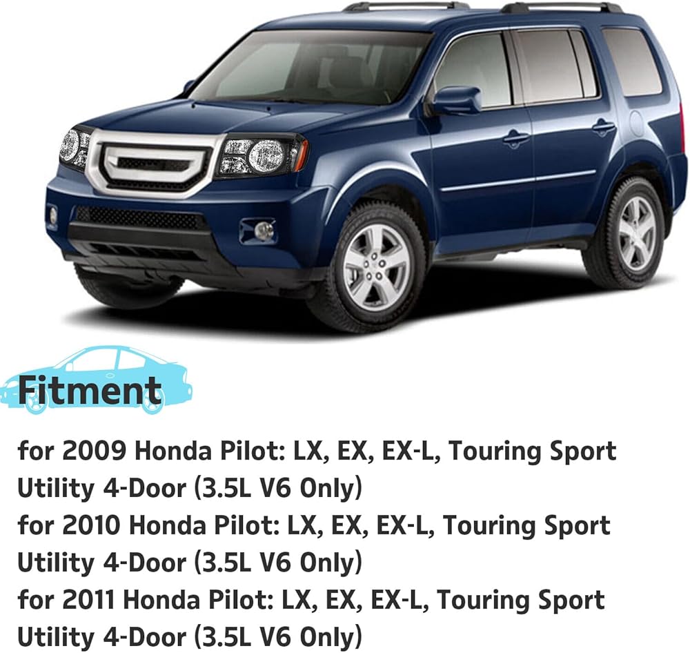Fits for 2009-2011 Honda Pilot Headlight Assembly,Halogen Headlamp Replacement Driver Passenger Side Black Housing Amber Reflector #HO2518125 33150-SZA-A01 HO2519125 33100-SZA-A01