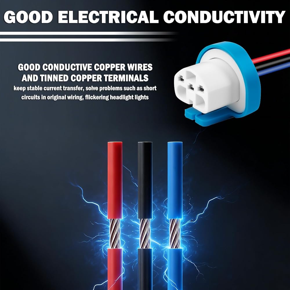 3. Provide stable and efficient current transmission, solve the original car line short circuit, headlight light flicker and other problems, to protect car headlight lighting stability, plug and play, easy to install