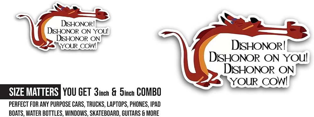 SIZE MATTERS: Each decal measures approximately 5 inches and 3 inches (2) Pieces- 3 inches and 5 inches. Dishonor on You Sticker DESIGN: This vinyl decal features a design perfect for customizing vehicles, trucks, laptops, windows, computers, bottles, flasks, skateboards, phones, walls, glass, RVs, boats, and more with a patriotic flair.