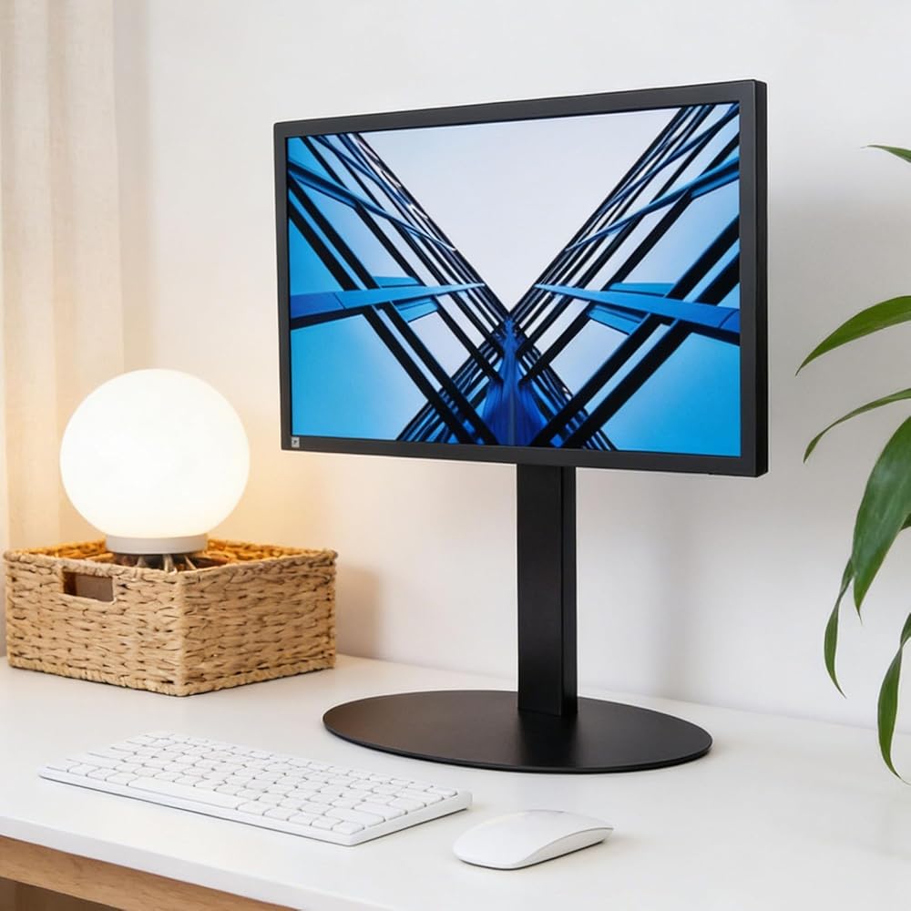 2. Sturdy Weight Capacity: The single arm design can hold up to 10KG, accommodating most medium to large display. Made of steel with a robust circular base (320mm diameter, 4mm thickness) for excellent stability.