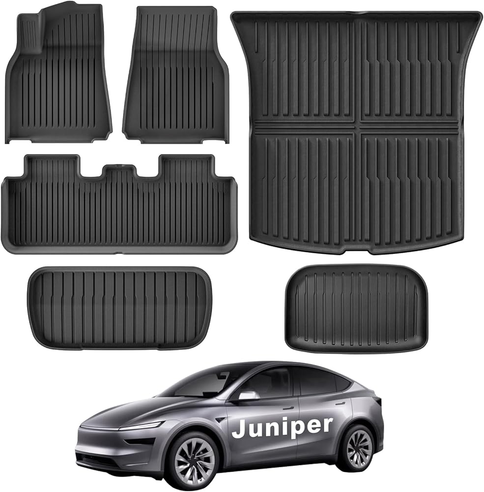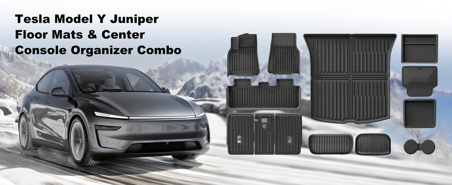 【Precision Fit for the New Tesla Model Y Juniper (2025-2026)】Exclusively engineered for the latest Model Y Juniper. The floor mats offer complete protection for all footwells and cargo areas, while the console organizer is custom-designed to fit seamlessly into the center console without rattling. ⚠️ Note: Not compatible with 2020-2024 Model Y. For New 2025-2026 Tesla Model Y Juniper only.