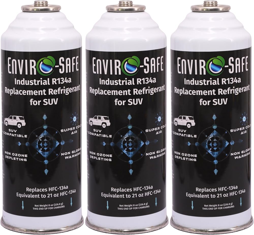 Product composition: Petroleum Gases, Liquefied. "THIS PRODUCT IS NOT HFC-R134A" Restore your A/C system's performance with Enviro-Safe R134a Industrial Replacement Refrigerant — a powerful, eco-conscious alternative to traditional R12, R134a, and R1234YF refrigerants. Each 8 oz can equals 16 oz of R12 or R1234YF and 21 oz of standard R134a, giving you more cooling power with less product. This refrigerant operates at lower head pressures than standard R134a, helping reduce compressor strain and improve system efficiency. Featuring a piercing can design, this product works seamlessly with standard charging equipment, making it ideal for DIYers and professionals alike. ✅ U.S. Customers: Per EPA regulations, R12 systems must be properly retrofitted with approved fittings and labels before use. 🍁 Canadian Customers: May use this product as a direct substitute for R12, R134a, or R1234YF systems without retrofit. Enviro-Safe is made in the USA, non-ozone depleting, and designed to deliver fast, cold air with reliable performance. ⚠️ Always follow local regulations and safety guidelines when servicing A/C systems.