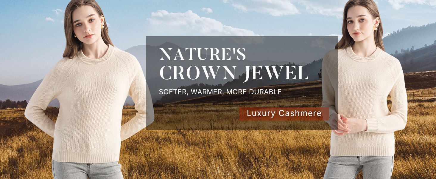 Cashmere is combed and sheared from hardy goats raised in the harsh environment of the Gobi Desert in Inner Mongolia, where the barren climate encourages the goats to grow luxurious down.The resulting sweaters have a luxurious, soft texture and possess elasticity and resilient memory, allowing them to stretch and recover their original shape.