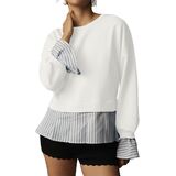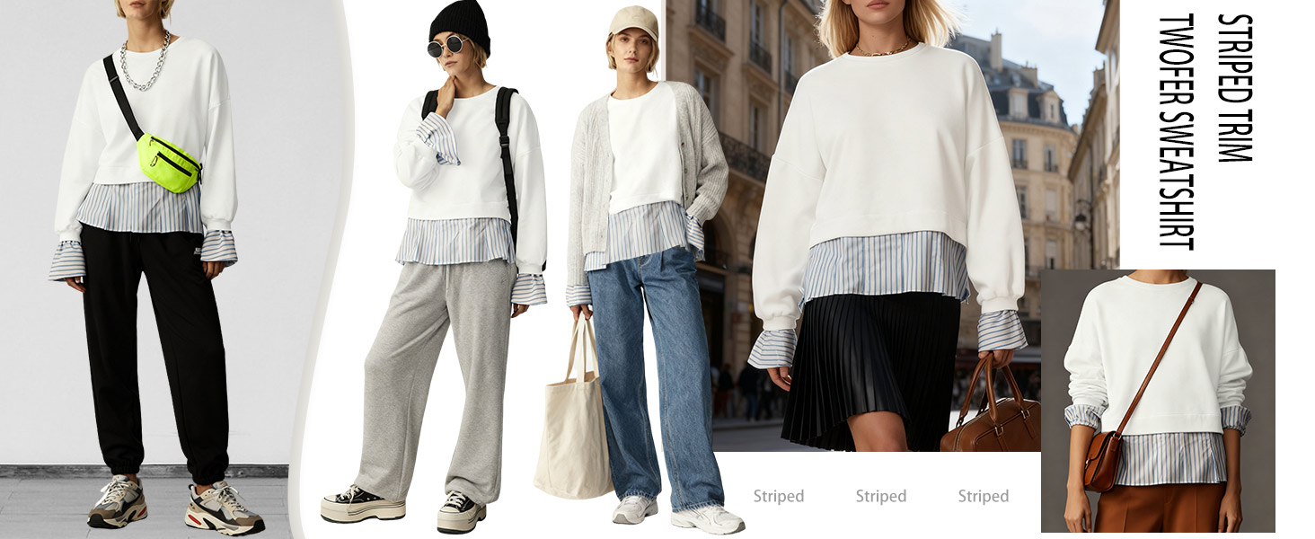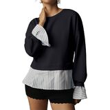 Material:This striped trim patchwork sweatshirt is made of 55% Cotton, 40% Polyester, 5% Nylon; 58% Polyester, 42% Cotton trim,comfortable, durable, and soft to wear in spring,fall and winter.