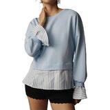 Design: This women's oversized sweatshirt looks like a button-down shirt with a sweatshirt pullover, but it's actually a sweatshirt with crew neck,long sleeve drop shoulder, striped patchwork hem.