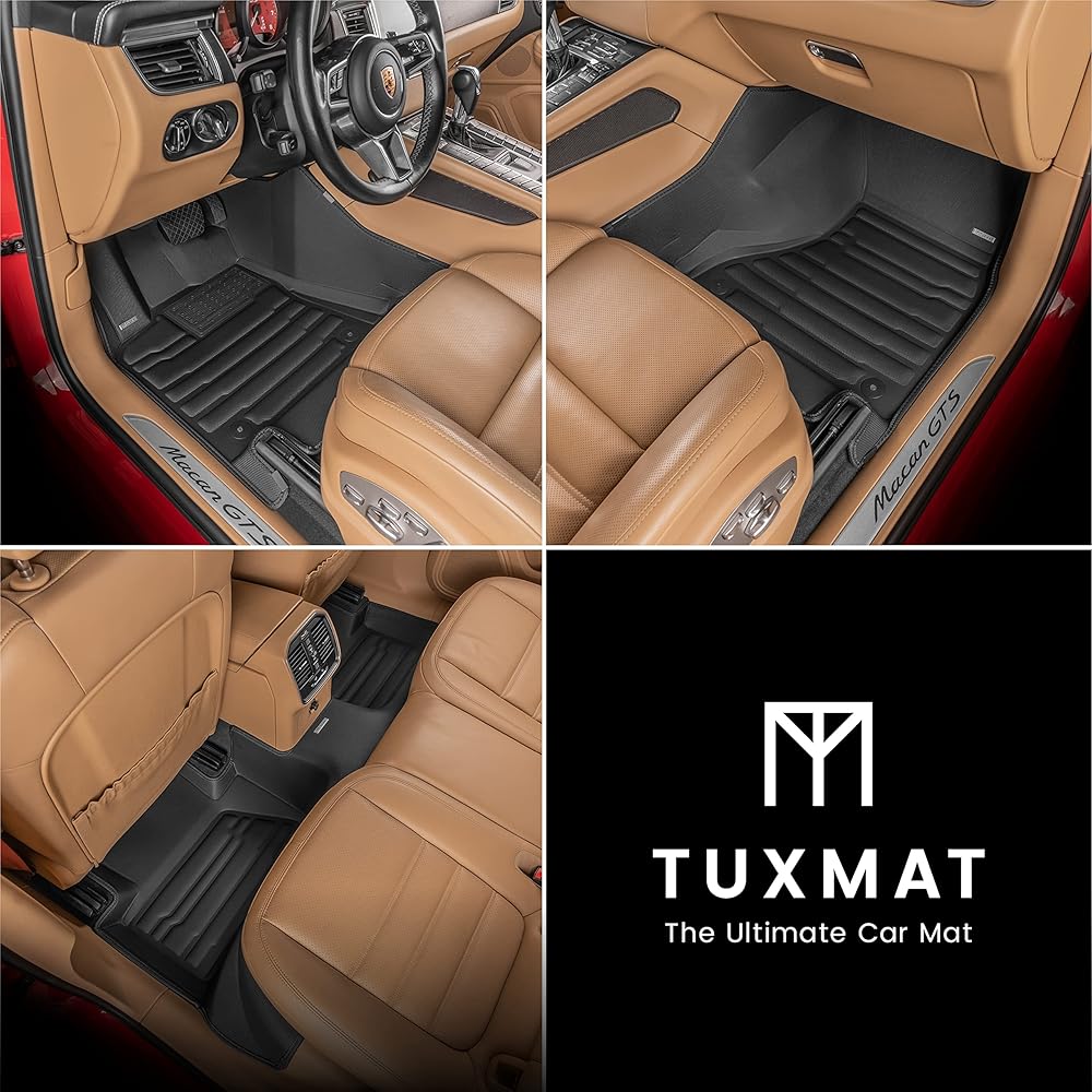 TuxMat - for Porsche Macan 2014-2026 Models - Custom Car Mats - Maximum Coverage, All Weather, Laser Measured - This Full Set Includes 1st and 2nd Rows