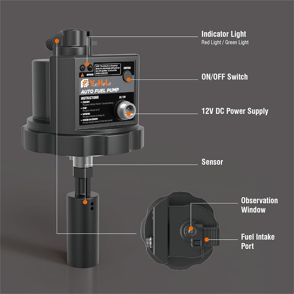 【Smart & Safe Fuel Transfer】Equipped with an intelligent flow sensor and auto start-stop technology, this 12V fuel pump automatically shuts off when the tank is full—preventing overflows and reducing fire risks. Its 24/7 voltage monitoring ensures reliable and worry-free operation.