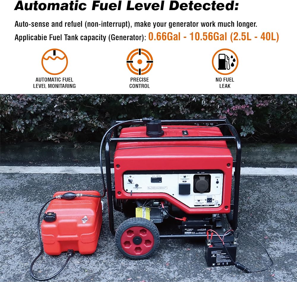 YueHeLe 12V DC Electric Fuel Pump with Auto Start-Stop Sensor, auto Liquid Transfer Pump ,3 adaptors , Overfill Protection. Compatible for various style of generators