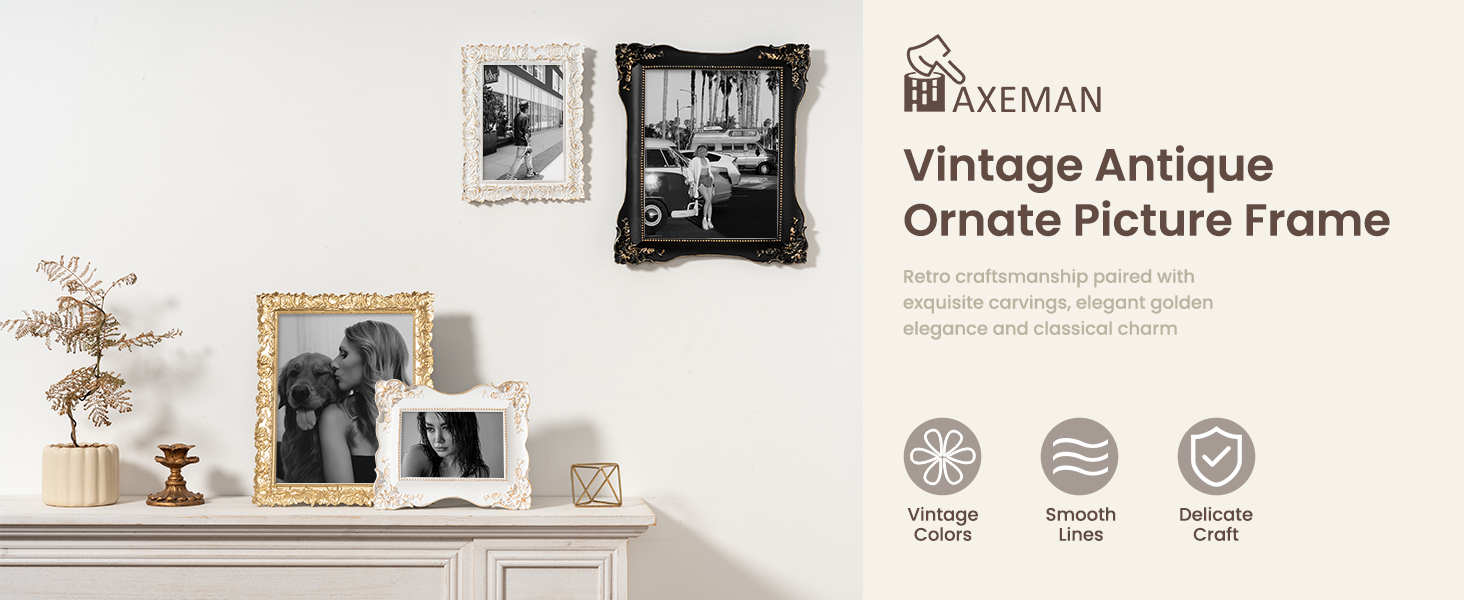 Details Make the Difference - Discover the unique retro style and outstanding craftsmanship of Axeman's antique picture frames. With user-friendly smooth turn buttons and easy wall mount hooks, changing pictures or displaying them in style has never been easier. Embrace the art of memory-keeping today