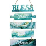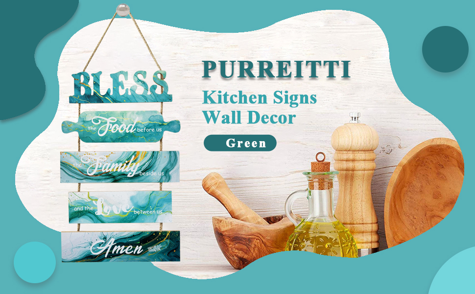 Bless the Food Before Us Sign, Farmhouse Kitchen Signs Wall Decor, Rustic Dining Room Art Wall Decor, Green Country Wall Plaques, Vertical Wall Hanging Wood Sign for Living Room Bedroom