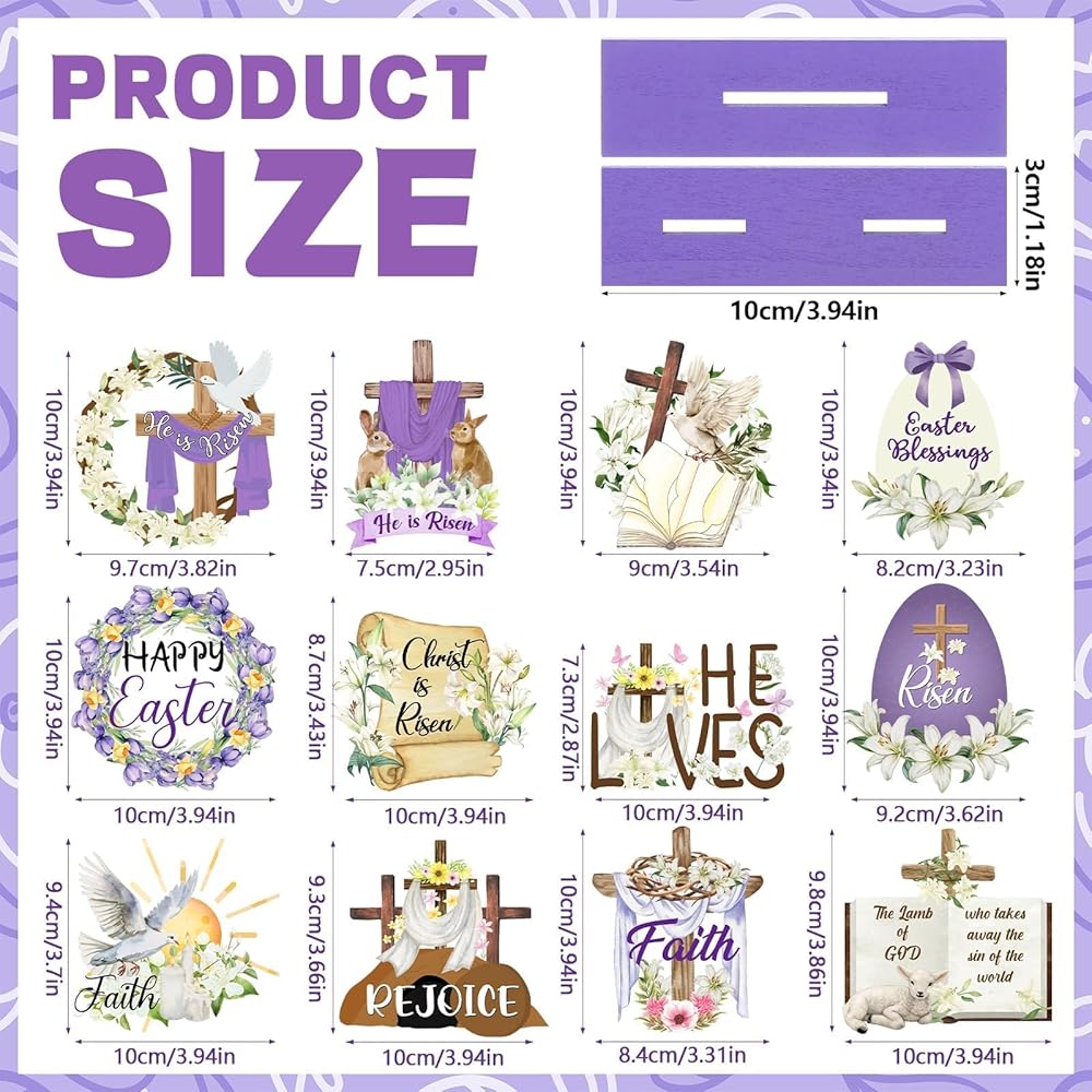 Easy to Assemble: each detachable religious easter decoration is about 3.94 inches/ 10 cm high; Just insert the easter decoration into the base to get a beautiful and delicate decoration that is easy to store and display, does not take up too much space, and adds more color and fun to your home; Due to the exquisite workmanship, the base and the topper can fit well with each other, they will not lose easily and can be applied with confidence