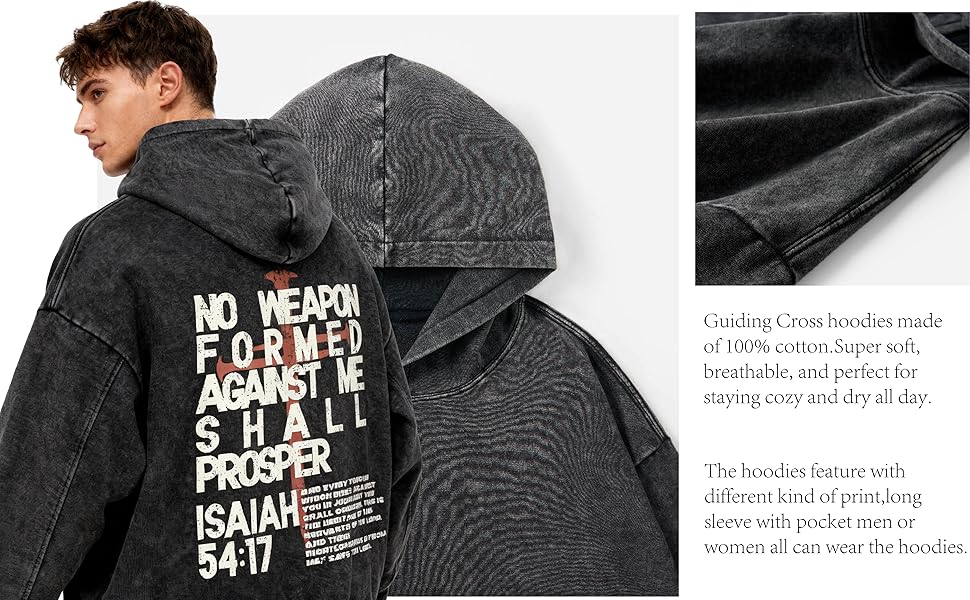 - FABRIC:Guiding Cross hoodies made of 100% cotton. Super soft, breathable, and perfect for staying cozy and dry all day.